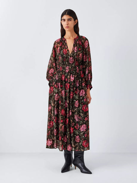 AND/OR Megan Floral Metallic Thread Long Sleeve Maxi Dress - Pink - UK 14