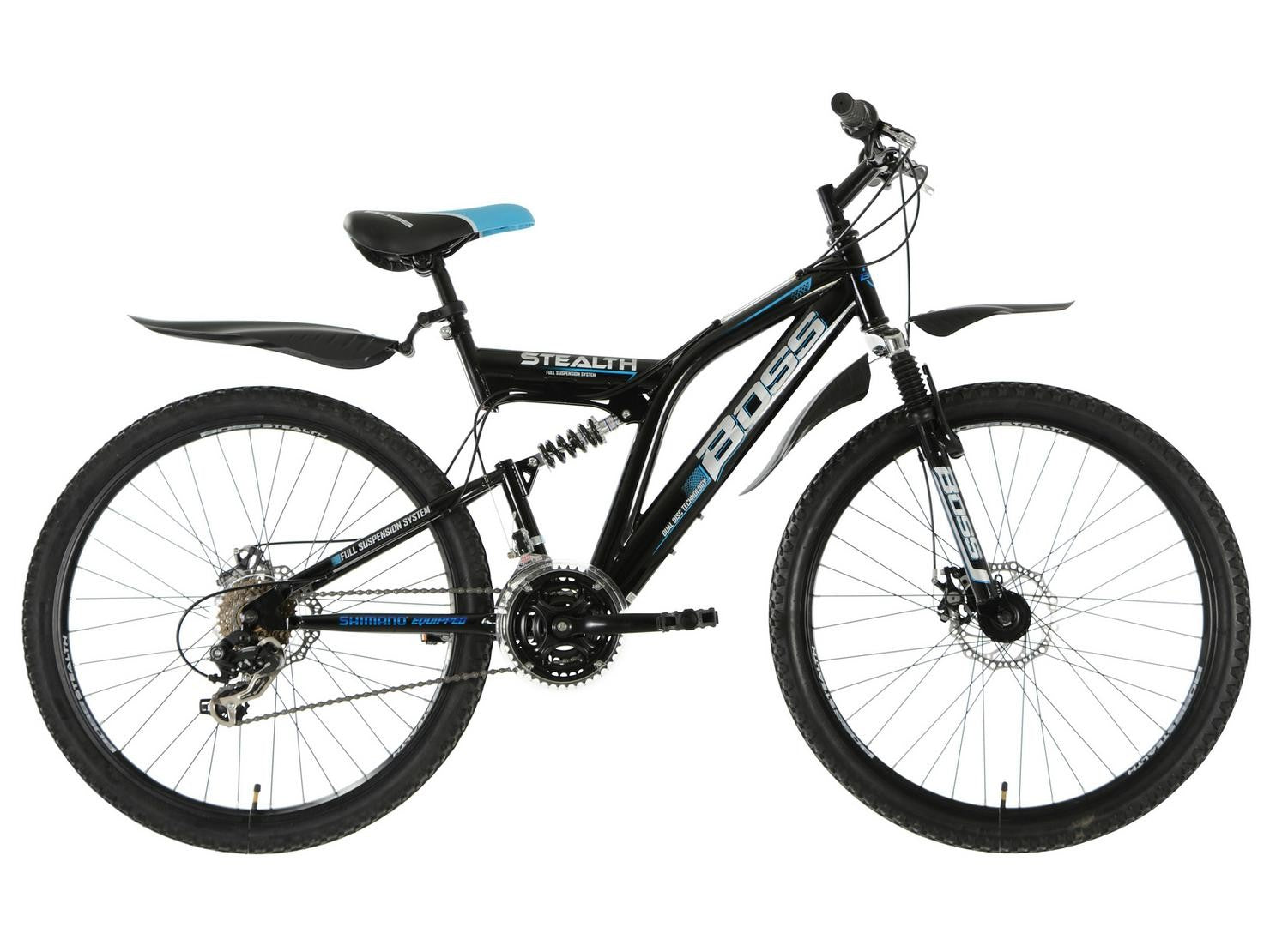 Boss Stealth Mens Full Suspension 21 Speed Mountain Bike - Black - Medium