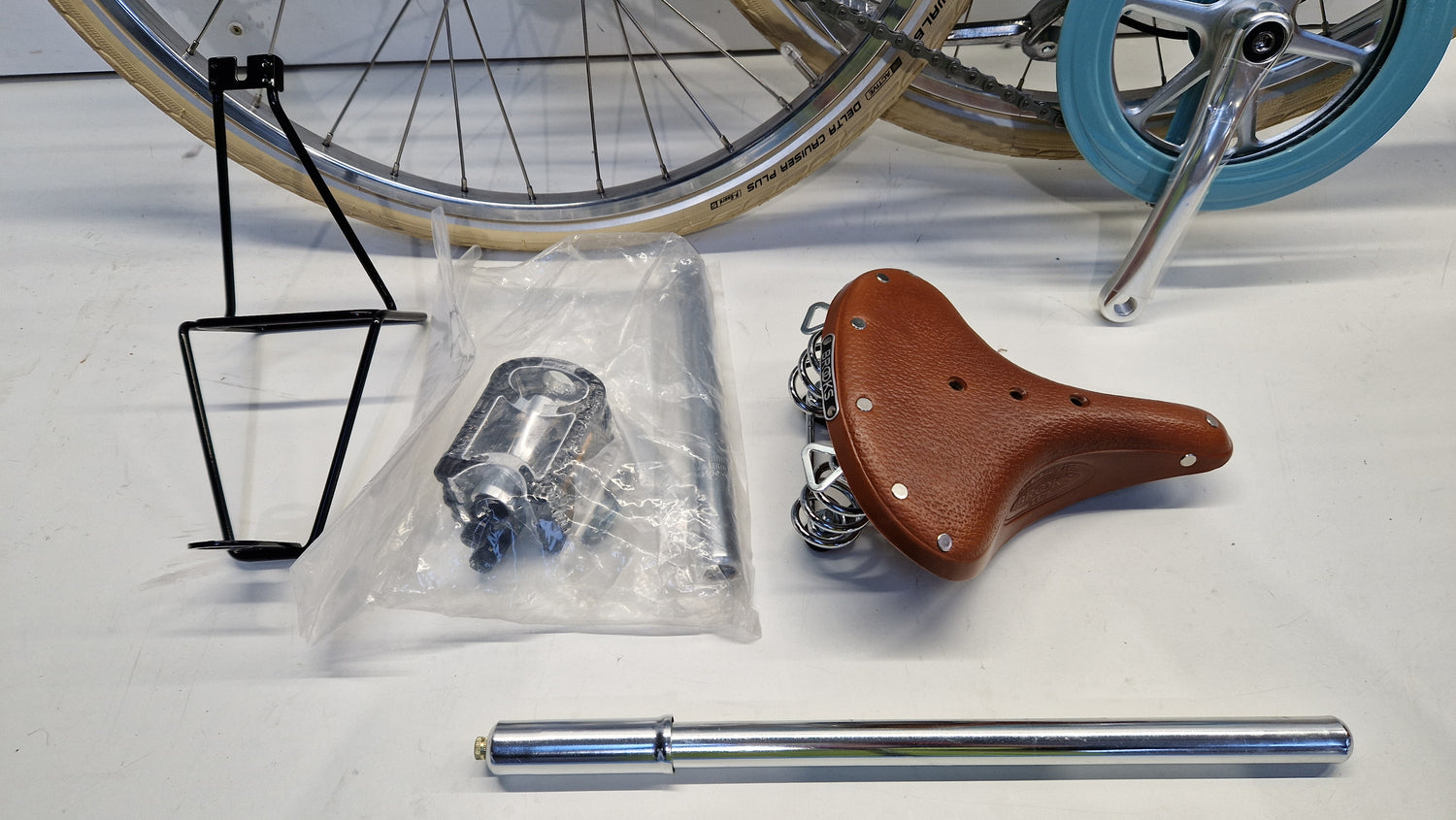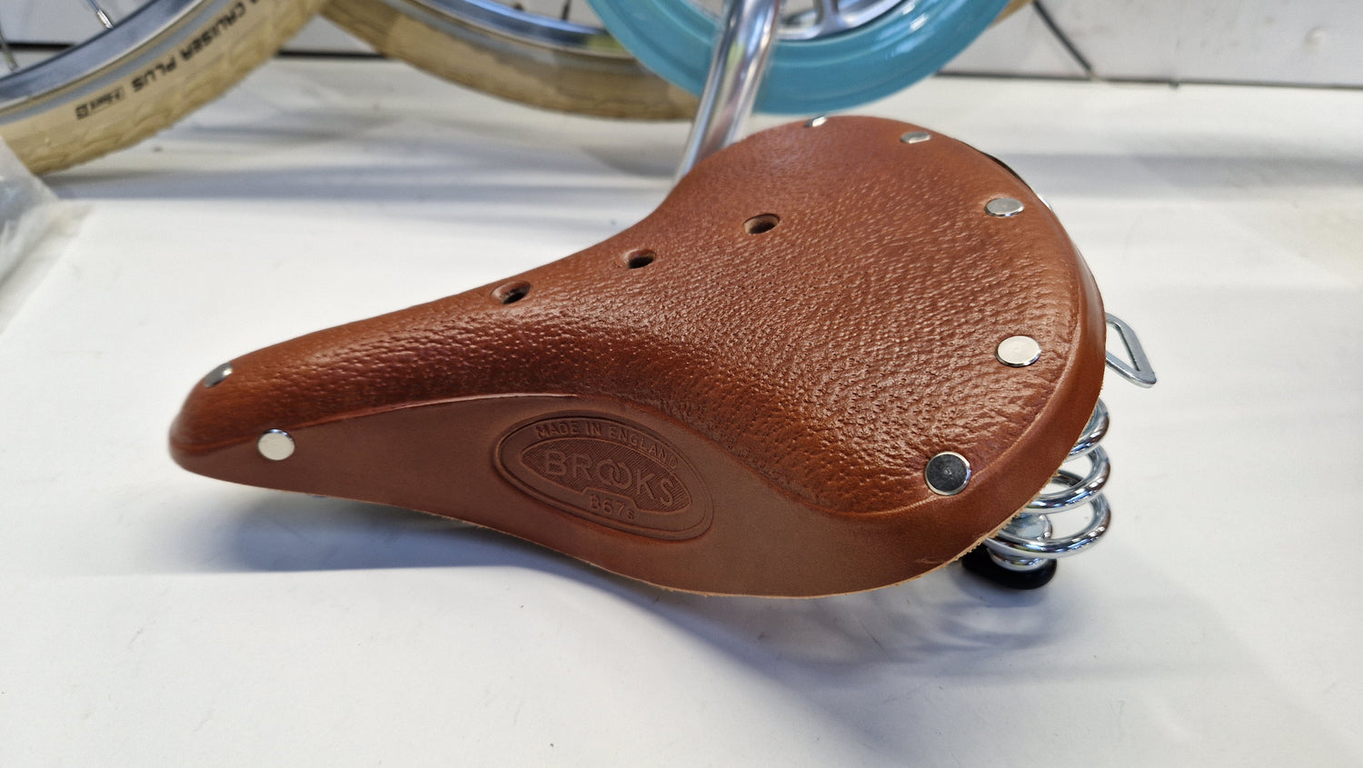 • Saddle: Honey brown Brooks B67s natural leather saddle with twin coil springs