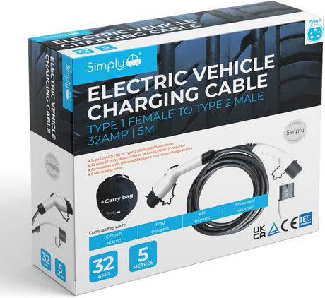 Simply Adjustable 5M 3Pin to Type 1 Electric Vehicle Flexible Charging Cable