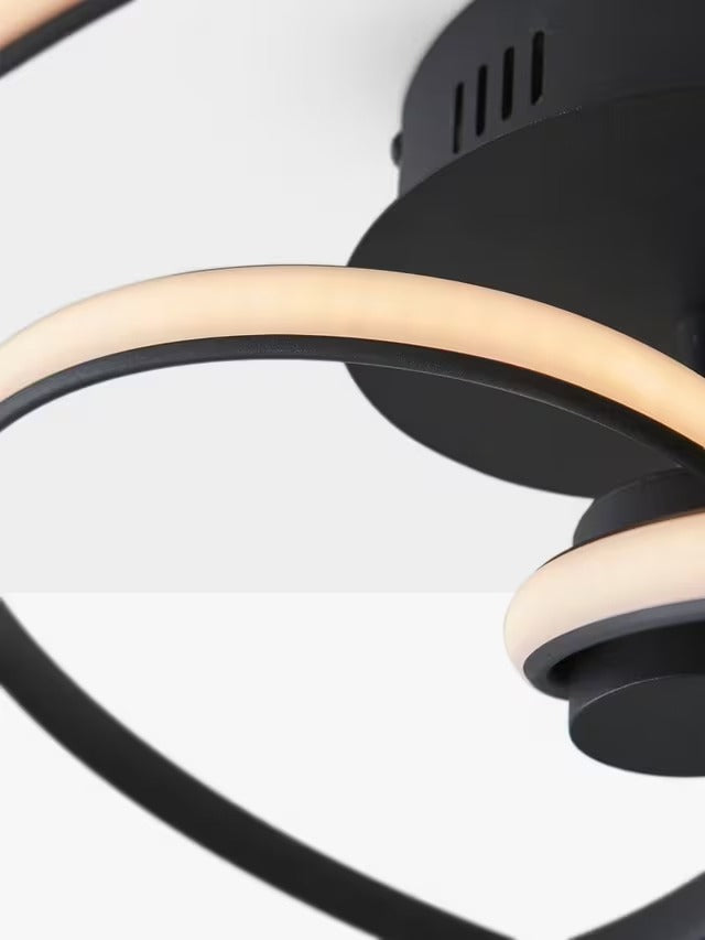 With its smooth swirl shape and smart contrast finish, this ceiling light offers a sophisticated and modern lighting solution for your space. The integrated LED provides a warm, diffused wash of light that enhances the atmosphere in any room.