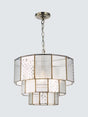 This tiered ceiling light is crafted from panels of textured glass arranged over three levels, creating striking light effects. The burnished brass frame contrasts beautifully with the glass to form a statement piece. Rhea complements a wide range of interior styles, from heritage and contemporary to industrial.