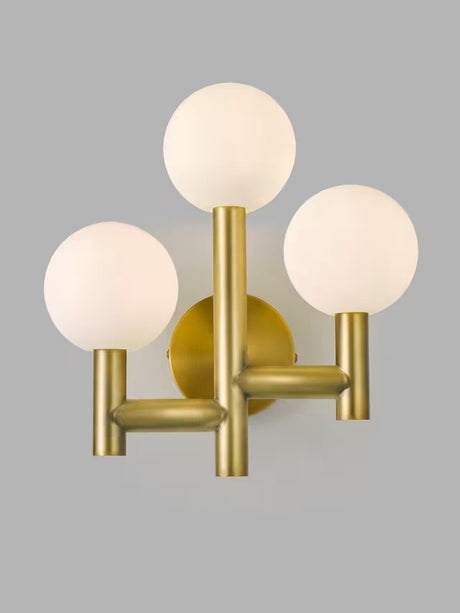 John Lewis Modern Globe Glass Shades 3 Arm Wall Light - Matt Gold/White