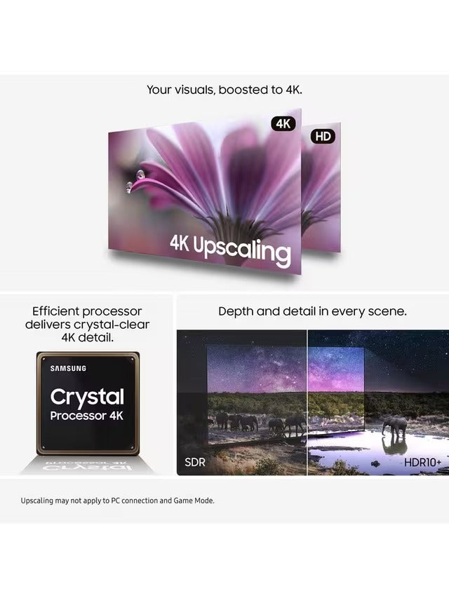 - Crystal Processor 4K: clarity is assured with intelligent 4K picture enhancement.