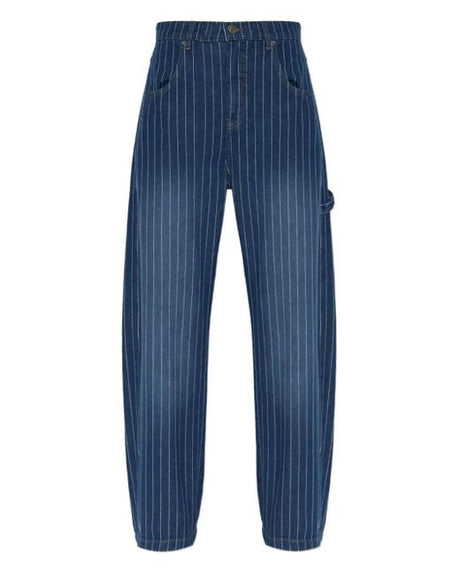 Munthe Womens Organic Cotton Denim Navy Blue Stripe Shimo Trousers - Size 42
