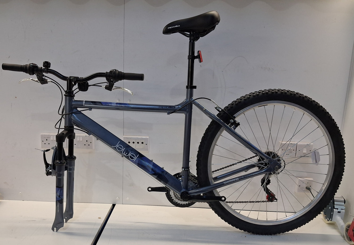 Apollo Jewel Womens 18-Speed Mountain Bike - Silver/Blue - Large 20'' Frame - Grade A is backordered and will ship as soon as it is back in stock.